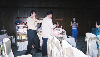 * 銀金玄関 というのは親戚や友達たちは新郎が新婦を迎えに行く途中で金のネックレースなどをドアとして使って新郎達から通過金をもらうという習慣のことです。(分かるかしら。。まあ、分からないなら後で聞いてください。)