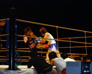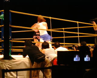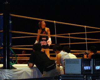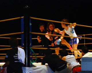 今年の2月にイタリアで行われたWKA世界女子バンタム級王者カリオピ・ゲイツィドウ(ギリシャ/スポーツクラブ・パグラティオ)との試合の観戦記であります。このところ8連勝中であったおーどりーさんが引き分けたこのイタリアでの試合、初回にフック一発でダウンを喫したもののその後盛り返してダウン寸前まで追いつめて引き分け。ビデオでも見ましたが、この試合おーどりーさんの判定勝ちでもおかしくないものでした。今回、相変わらず相手のいないおーどりーさん、結局彼女と再戦することになりまして、Girls Shockなるイベントにて「日本女子チームvs世界の5対5対抗戦」の一試合に出場しました。この試合にもしっかりとタイから観戦しにきた管理人はバカかもしれません。。。
