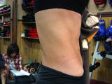 そうです、この試合相手のニッノーイの体重調整の失敗もあり、51キロの契約体重が、試合の数日前に50キロになってしまったのです。ちなみに普段の試合は52キロ。すでにそれでも細いというのに…。もう最後は何も食べないでヘロヘロ、逆に相手は増量して挑んできているわけで、もう体調は万全。血色いいの何のってもう、まるで観光気分であります。その計量が無事に済み、一応相手とも顔見知りの管理人が挨拶に行ったついでに、腕を触ってきました。お〜、やっぱりタイ人、細ええええええ。帰ってきて第一声