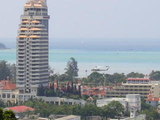 ちなみにみいさんの家から見るとパトンビーチはこのようになってまして、ここに目で見えるレベルの波が襲ったと言うことです。現在はセスナが何機も旋回し、海上にはピカピカ光る残骸らしき物が(船やジェットスキーだと思われる)多数見えるそうです。