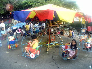 その市場で見かけた光景。宙を舞う子供達は大喜びです。