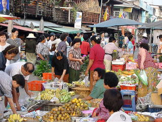 タイでは週一で空き地を使って市場が開かれることがよくあります。