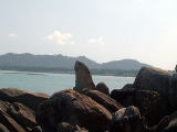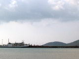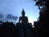 ここから一気に西海岸に向かいました。つまりこの海に見えるはるか向こうはタイ本土と言うことになります。上の二枚の写真はビーチではないサムイの海と本土とサムイを結ぶ港です。たぶん知らないでここに来れば港なのに海がきれいだと思うでしょう。 一番下の写真は 「ワット プラヤーイ(ビッグ仏陀)」 です。写真はちょっとわかりにくいですが、これ結構でかいです。もちろん色は金ぴかです。後ろが海になっていてちょうど夕方で逆行になってしまったために色もわからないヘボ写真になってしまいました。ここでタンブン(お布施)をしてきました。自動販売機もどきのお米を買うところがあって、それを様々な功徳の書いてあるツボに祈りながら入れるのですが、我々が「いいことがありますように」とか、「健康になりますように」など全てのツボに米を入れて祈ったのに対し、あとからやってきたうっとうしいタイ人の男の子はお母さんに「お金持ちになれるのはどれ?」と聞いて、お母さんもどのツボか教えた上家族そろってそこにだけ入れてました。おいおい、それでいいのかタイ人… |
