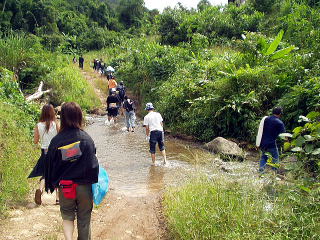 さて、出発。各自 歩き出す。行きは辛かったけど帰りはましかな?と思いつつ歩き始めると道途中で皆写真をとっている。ついでに酒を持っている子発見!いただきぃ〜!氷の入ったチャーンビール、うまいぃ〜。きっとバンコク帰ったらチャーンビールなんて飲まないだろうね。。でも、おいしぃ〜。